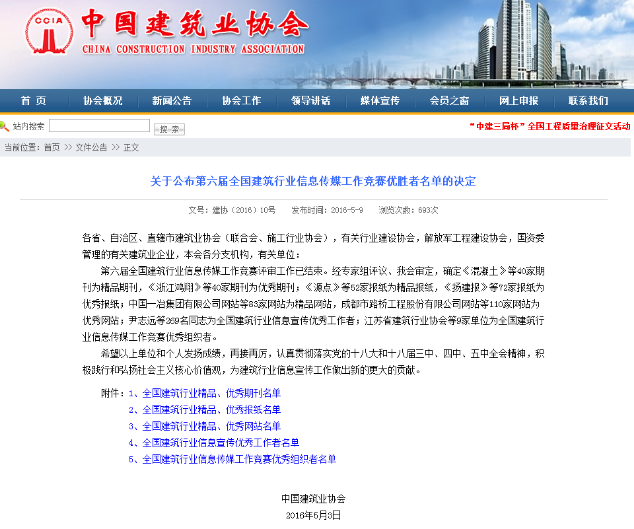 公司報紙網(wǎng)站雙雙蟬聯(lián)全國建筑行業(yè)優(yōu)秀媒體