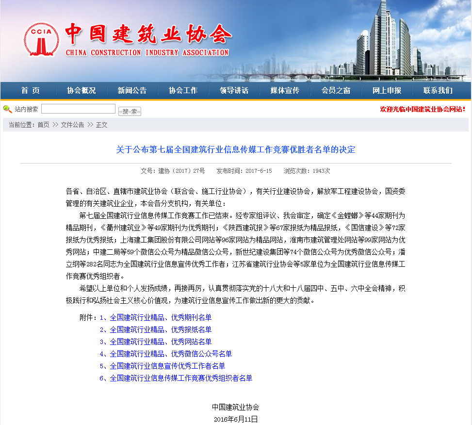 公司網(wǎng)站及報紙再次蟬聯(lián)"全國建筑行業(yè)優(yōu)秀網(wǎng)站"及"優(yōu)秀報紙"稱號