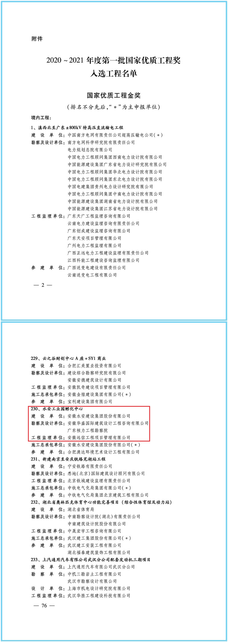 12月1日,中國施工企業(yè)管理協(xié)會網(wǎng)站公布了2020~2021年度第一批國家優(yōu)質(zhì)工程獎入選工程名單,安徽遠(yuǎn)信監(jiān)理的水安工業(yè)園孵化中心項目名列其中,獲得國家優(yōu)質(zhì)工程獎。這是該項目自2019年度琥珀杯,2020年度黃山杯之后獲得的又一榮譽(yù),也是安徽遠(yuǎn)信繼湟中縣巴城城中村棚戶區(qū)改造一期及公租房建設(shè)項目、中化三建技術(shù)研發(fā)中心項目之后,再一次斬獲“國字號”殊榮。