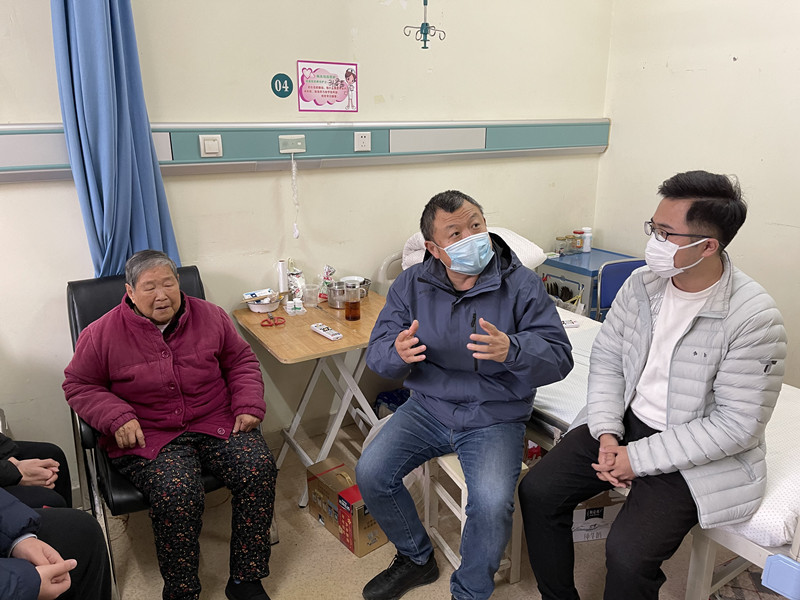 在住院部病房,余松林董事長關(guān)切詢問了馬老的身體狀況和生活情況。老人雖年事已高,但仍舊頭腦清醒、精神矍鑠,對遠(yuǎn)信黨支部一行的到來感到非常高興,并激動地講述起參加渡江戰(zhàn)役的親身經(jīng)歷。
