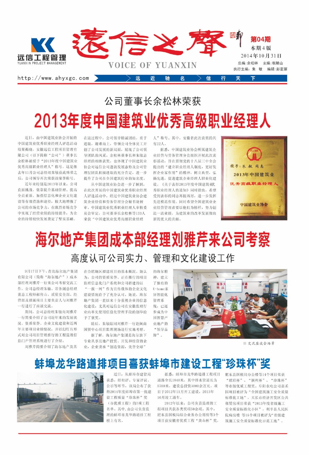 企業(yè)報(bào)《遠(yuǎn)信之聲》(第四期) 發(fā)布時(shí)間:2014-10-29 閱讀量:2405 上一篇:企業(yè)報(bào)《遠(yuǎn)信之聲》(第五期)下一篇:企業(yè)報(bào)《遠(yuǎn)信之聲》(第三期)