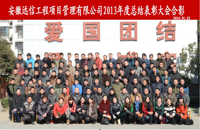 2014年1月22日,公司2013年度總結(jié)表彰大會在黃山大廈同心苑花園酒店隆重召開。董事長余松林、總工程師郝傳山、副總工程師任明德列席會議,常務副總經(jīng)理朱敏主持會議。公司管理人員、總監(jiān)、總監(jiān)代表以及監(jiān)理人員代表共140余人參會。