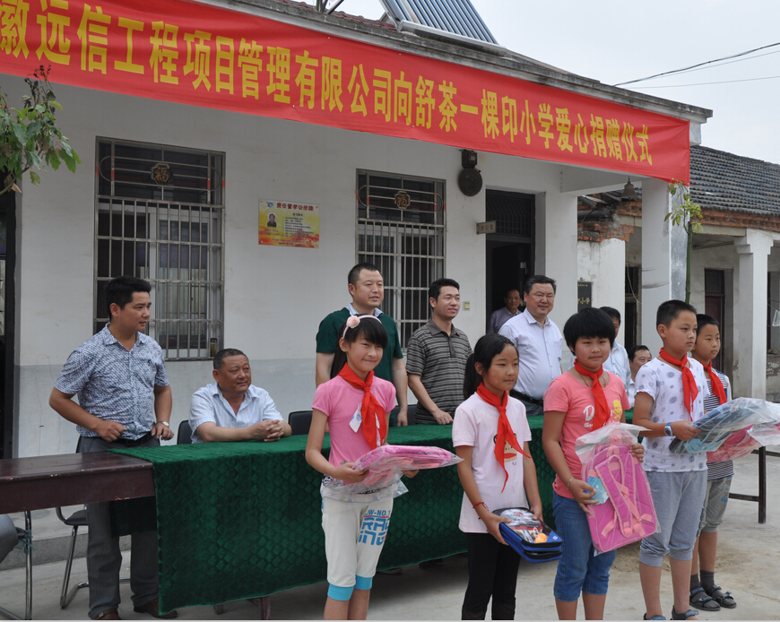 捐贈(zèng)儀式上,余松林董事長(zhǎng)在熱情洋溢的致辭中,簡(jiǎn)要介紹了公司基本情況和活動(dòng)的目的后,感慨地說(shuō)道:“今天來(lái)到一顆印小學(xué),是我們安徽遠(yuǎn)信公司捐資助學(xué)、回饋社會(huì)活動(dòng)的首站,也是第一次開展這樣的公益性活動(dòng)。雖然我們的付出或許很微薄,但足以體現(xiàn)我們安徽遠(yuǎn)信公司所迸發(fā)出的社會(huì)責(zé)任感和使命感,我們將堅(jiān)定不移地把這份愛(ài)心延續(xù)下去,希望能有更多的企業(yè)、更多的有識(shí)之士能攜手關(guān)注這群農(nóng)村留守兒童群體,給他們更多的關(guān)愛(ài)?!?span>